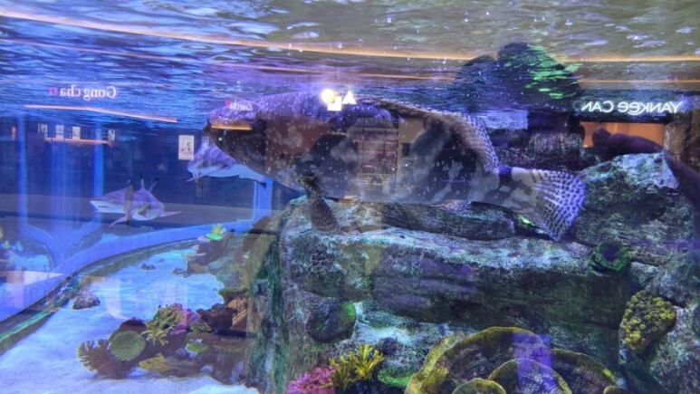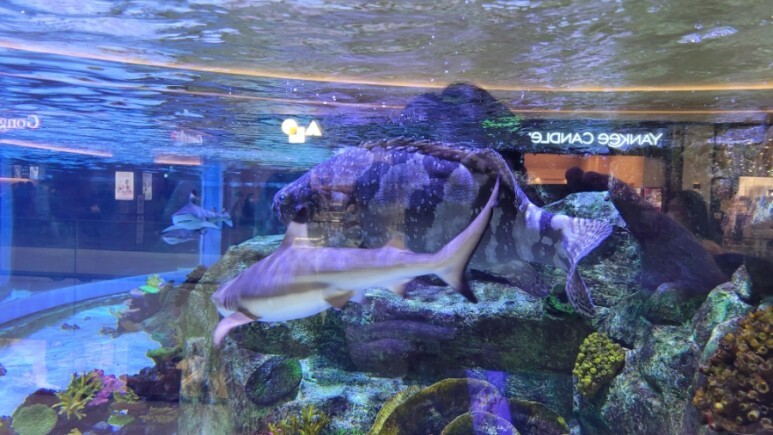 카페를 수족관으로 만들어져 있어서 발길이 안으로 들어가게 만들었다.