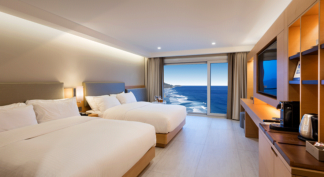호텔방은 오션뷰와 하프오션뷰가 있는데 오션뷰는 베란다에서 바다가 쫙 펼쳐지는 관경이며,