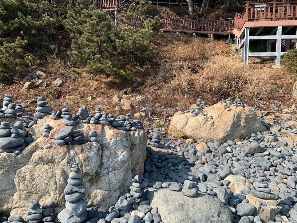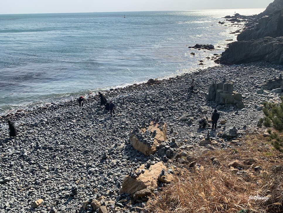 돌의 크기가 아주 다양합니다. 작아서 던질수 있는 정도의 돌도 있고, 힘으로 들기 벅찰정도의 돌들도 함께 바닷가를 장식하고 있습니다.