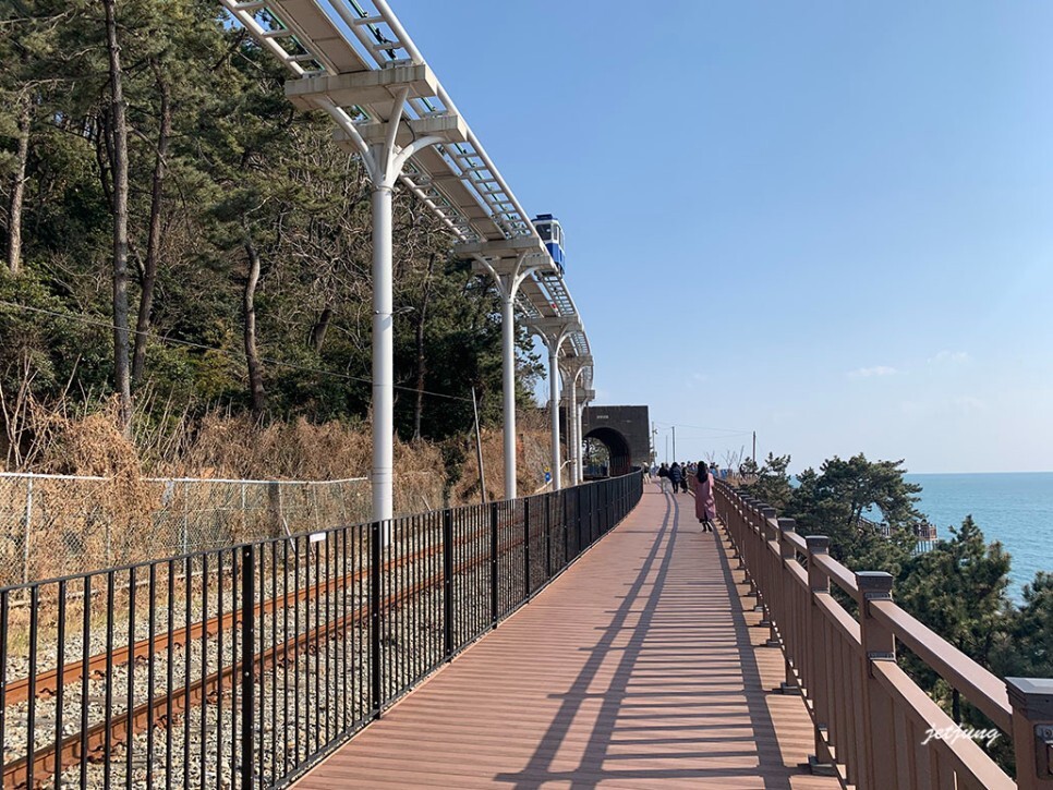 기차를 타지 않고, 바로 이 원목의 산책로를 걷는게 이번 부산 해운대 가볼만한곳 코스의 핵심입니다.