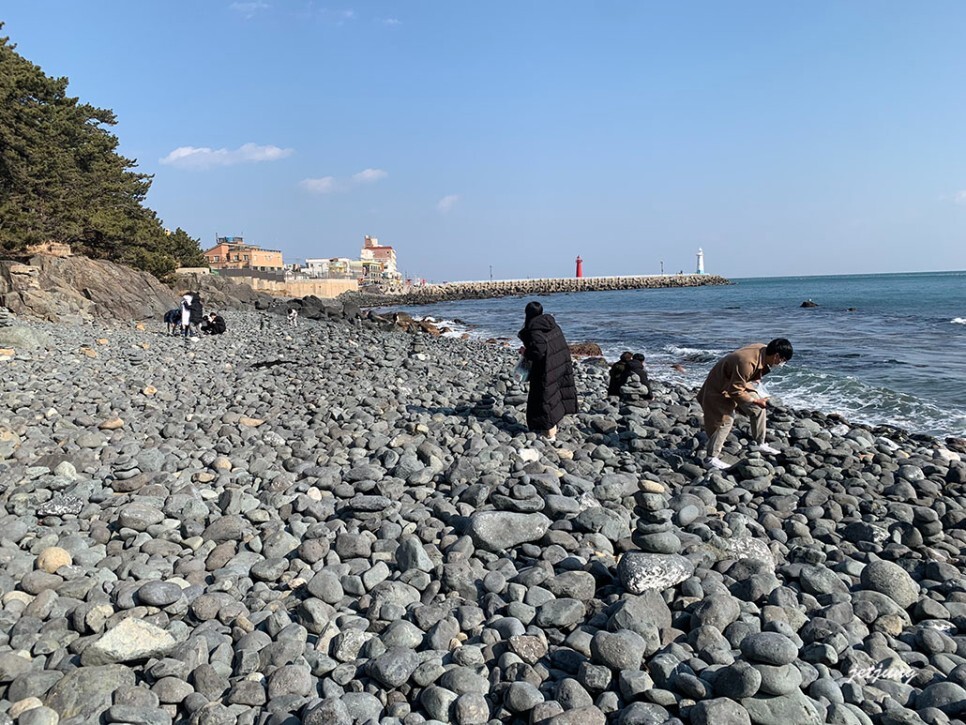계단을 내려가면, 모래는 없고, 굵은 돌맹이들로 가득한 특이한 해변을 마주하게 됩니다. 이곳이 몇십년동안에 개방되지 않은 미지의 해변으로 남아있다가 얼마전에 개방된 곳이라서, 예전에 부산여행을 왔던 분들에게도 생소한 관광지입니다.
