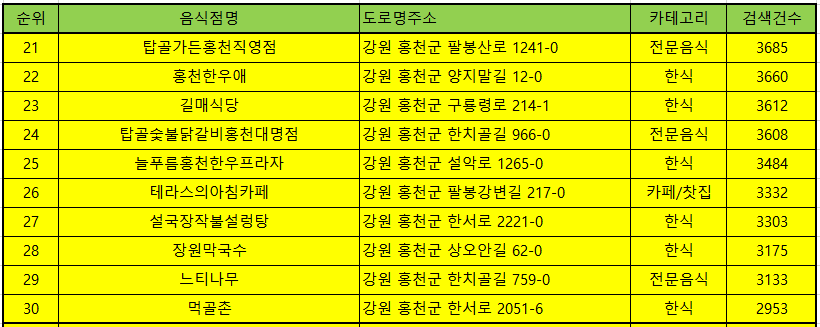 안녕하세요. 전국맛집을 알려드리는 일상탈출입니다. 오늘은 강원도 홍천 맛집 추천해 드리겠습니다. 홍천 맛집 베스트10은 유명해서 사람들이 많이 방문하는곳 10곳이며, 홍천맛집 방문순위 TOP50 알려드립니다.