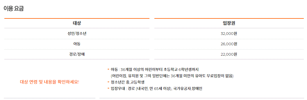 ※ 기타 무료(증빙 서류 제출시) 장애인, 국가유공자, 국민기초생활수급자, 만65세 이상 등 경기도어린이박물관 홈페이지 참고