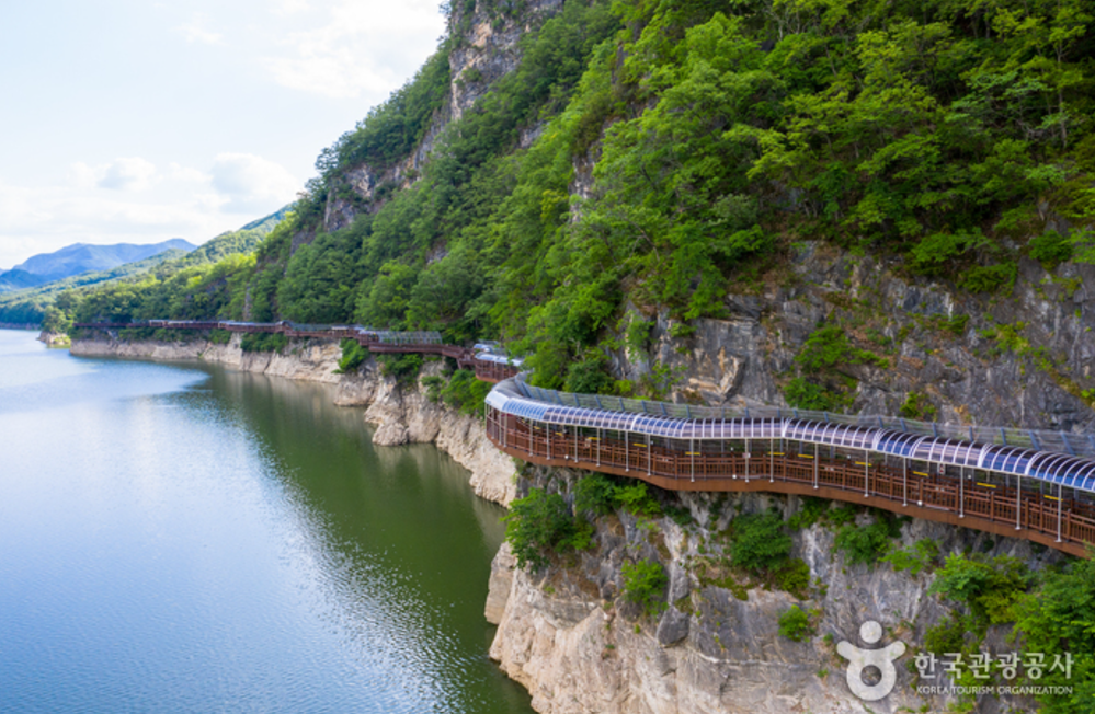 잔도를 따라 걸으며 남한강의 아름다운 풍경을 감상해 보세요.