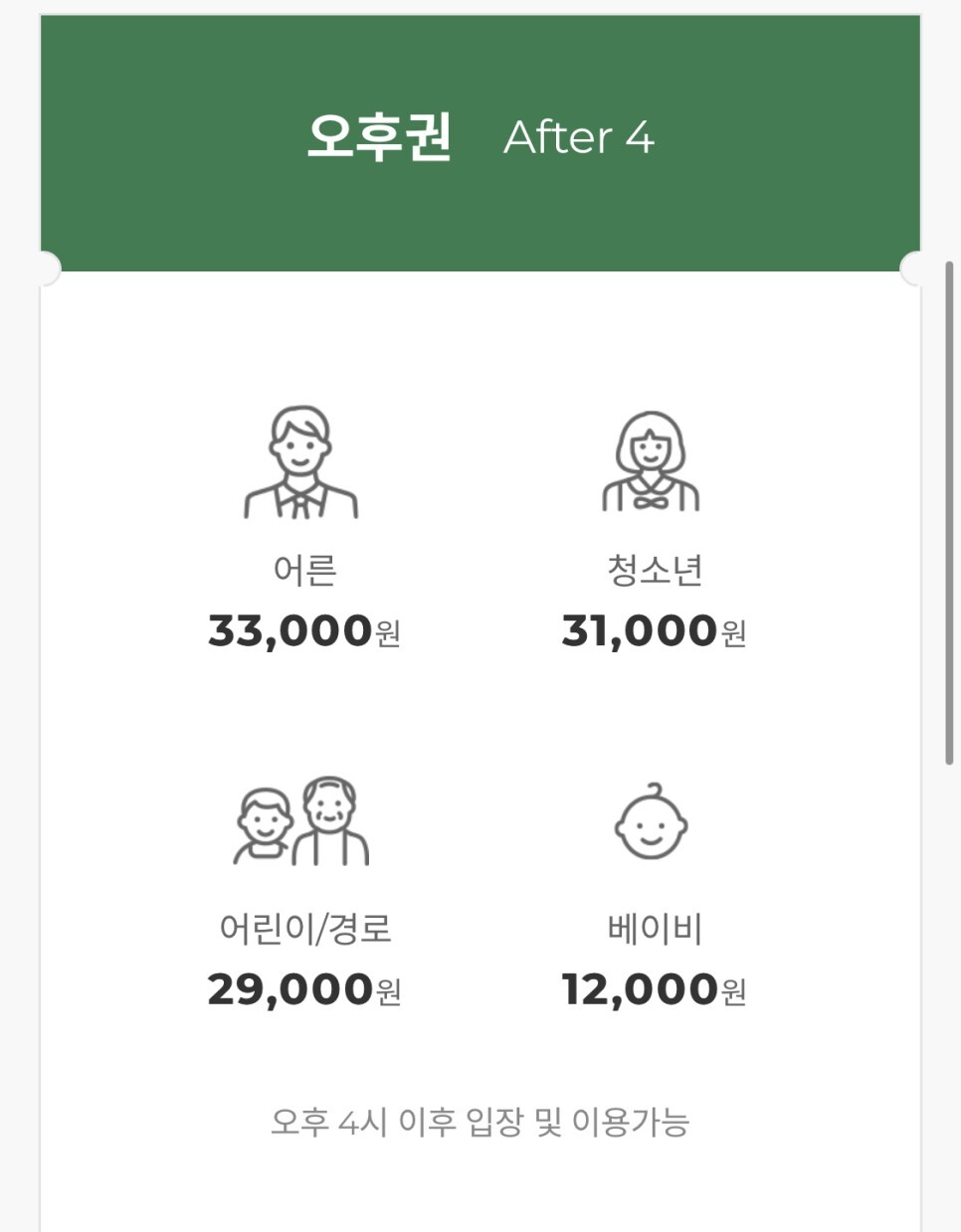 그럴만도 한게 자유이용권이 종일권 외에 오후권도 있기 때문이다.