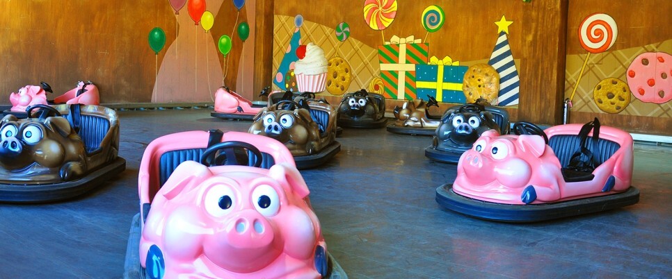범버카도 두종류가 있었는데 아기돼지 범버카와 양들의격투 이 두가지가. 둘 차이점은 아기돼지는 어린이 전용이며 120cm이상 140cm미만이 탑승가능하고 105cm이상은 보호자 동반 탑승이 가능하다.