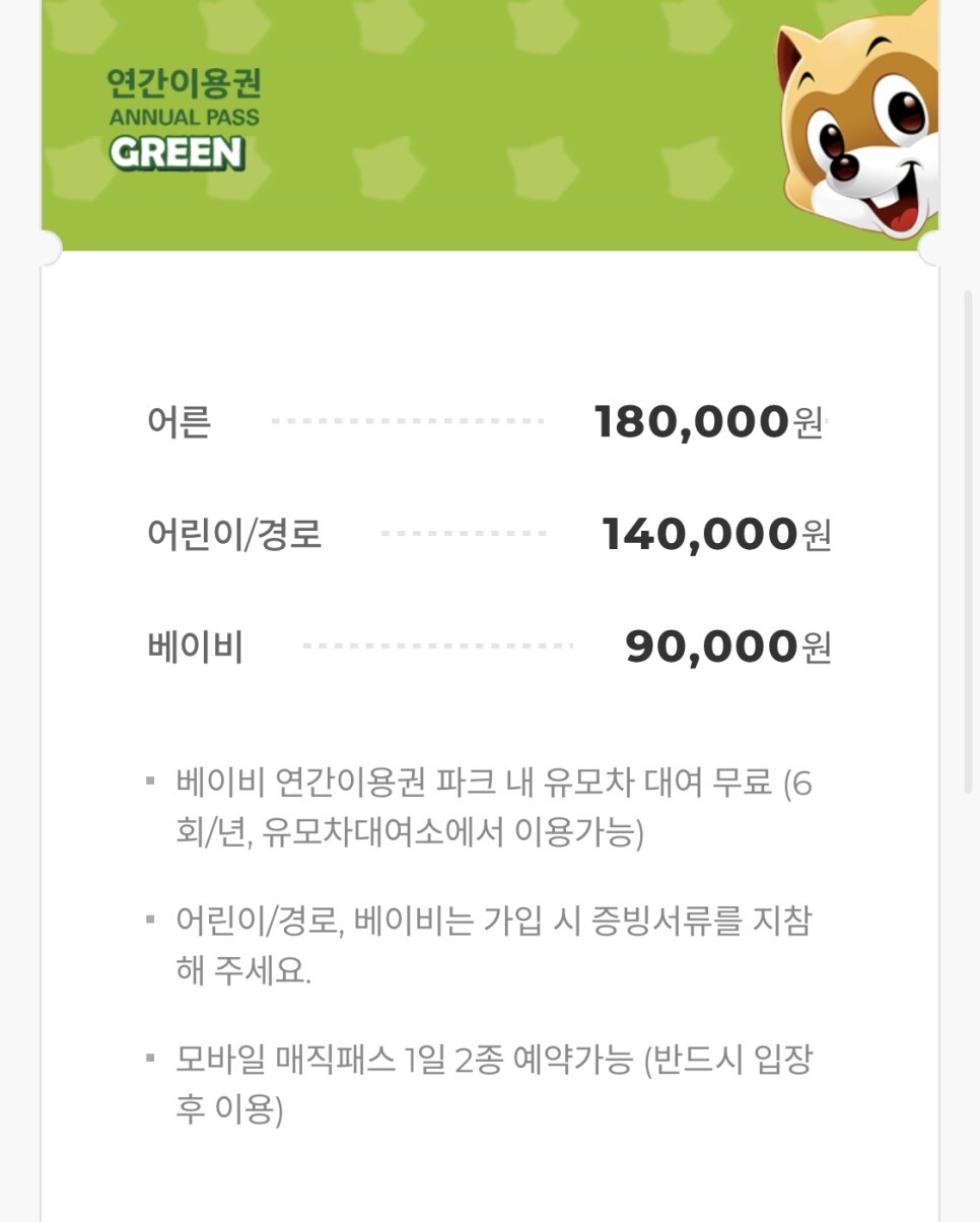 부산 놀이공원 연간이용권은 사진을 보고 가격을 참고하면 되는데 골드와 그린으로 나눠진다. 각 종류마다 혜택이 다르긴 한데 내가 봤을땐 그린 보다는 골드가 우선탑승권도 있고 더 효율적인것 같다.