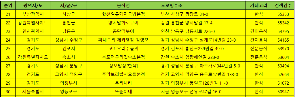 안녕하세요. 전국맛집을 알려드리는 일상탈출입니다. 오늘은 2024년 대한민국에서 네비게이션 검색 후 제일 많이 방문한 전국 맛집 방문 순위 TOP50에 대하여 알려드리겠습니다.