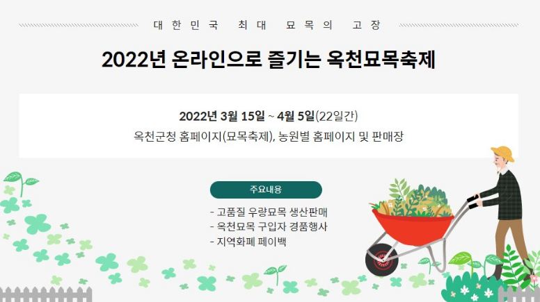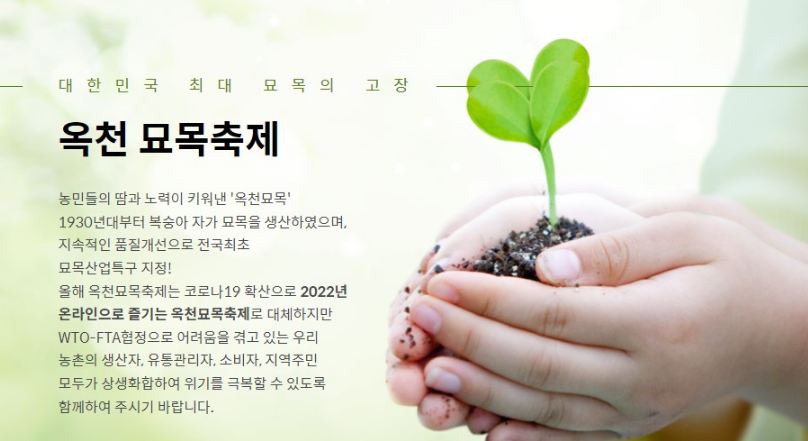 올해 옥천묘목축제는 코로나19 확산으로 2022년 온라인으로 즐기는 옥천묘목축제로 대체하지만