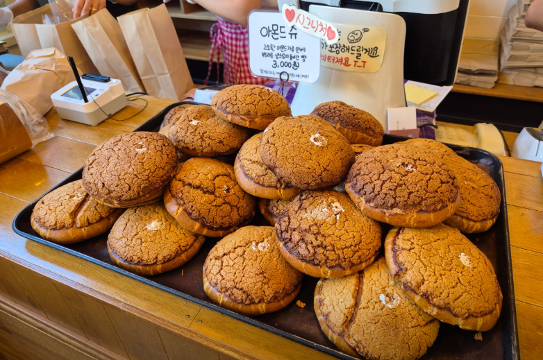식구들이 전부 다 단맛 안좋아하고 빵을 안먹는데 모리씨 빵은 좋아하고 잘 맞아요. 단 맛은 유일하게 팥을 좋아하는데 단팥빵도 많이 안달고 맛 있어요 담백해서 친정 아빠도 이건 입맛에 맞다고 하시네요 차랑 먹어도 좋고 아이는 토스트 해서 샌드위치 만들어주니 잘 먹어요. 저는 와인이랑도 자주 먹어요. 아몬드슈 바삭 촉촉 너무 좋아요!크림도 안달구요!달지 않으니깐 느끼하지도 않아서 계속 먹게 되네요ㅎㅎ치즈 송송빵도 식감도 쫀득하니 좋구 치즈도 진짜 많이 들어있어요!일방 빵집이랑은 식감이 다르네요!벌교 들른김에 사길 너무 잘했어요ㅎㅎ