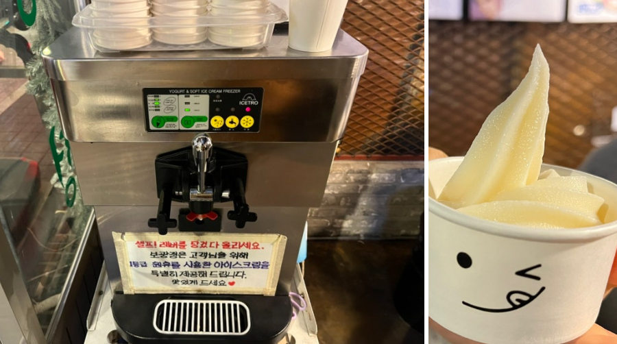 맛있게 밥까지 다 드셨다면, 마무리는 달콤한 아이스크림으로 마무리 할수 있도록 아이스크림 기계도 설치되어 있어서 직접 뽑아 드시면 됩니다. 아이들이 아주 좋아 할만한 컨셉이라 아이들과 함께 방문하는것도 추천 드립니다.