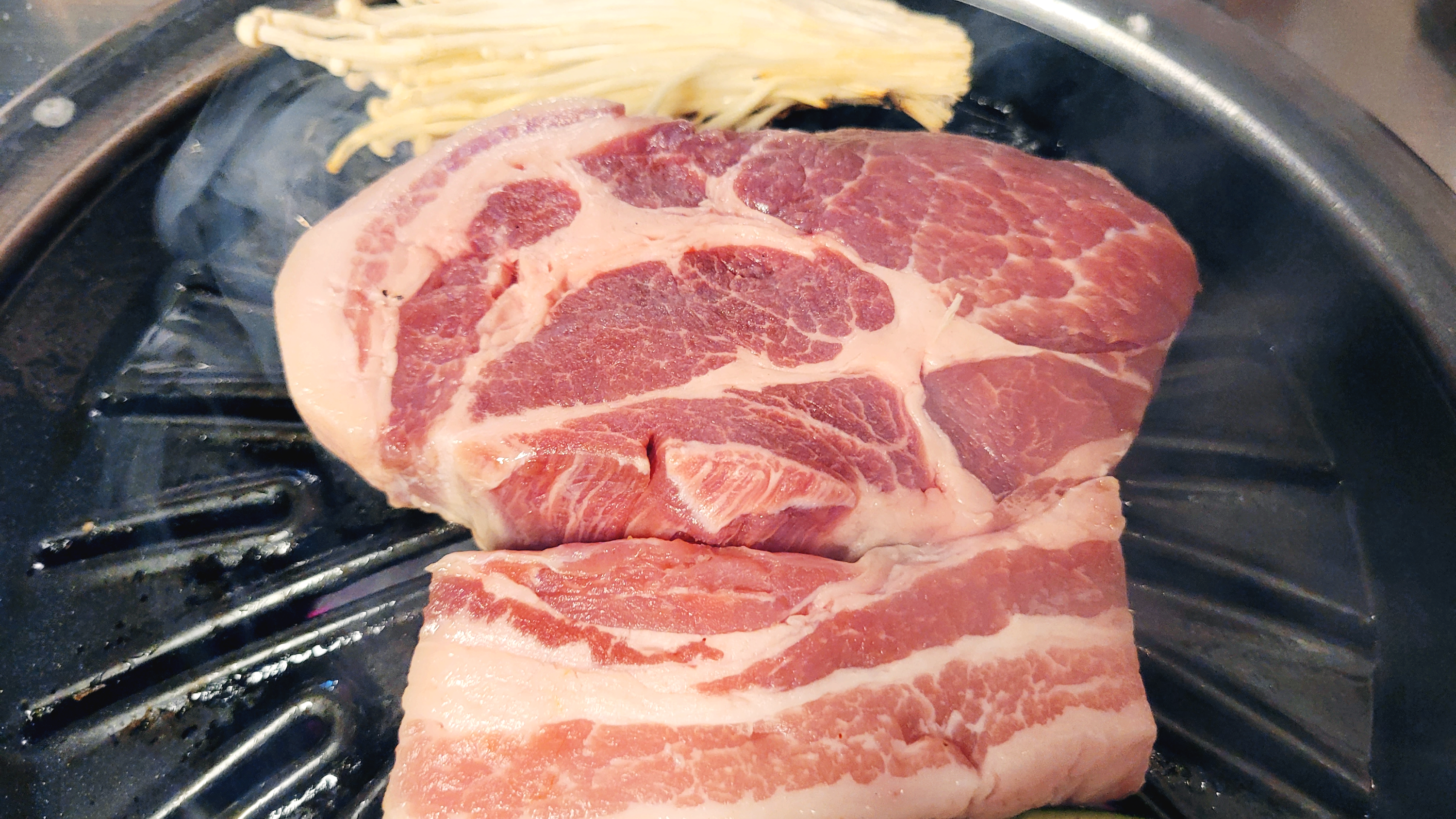 삼겹살보다 기름기가 적인 목살입니다. 두툼한 목살와 지방의 조화 구우면 얼마나 맛있겠습니까?