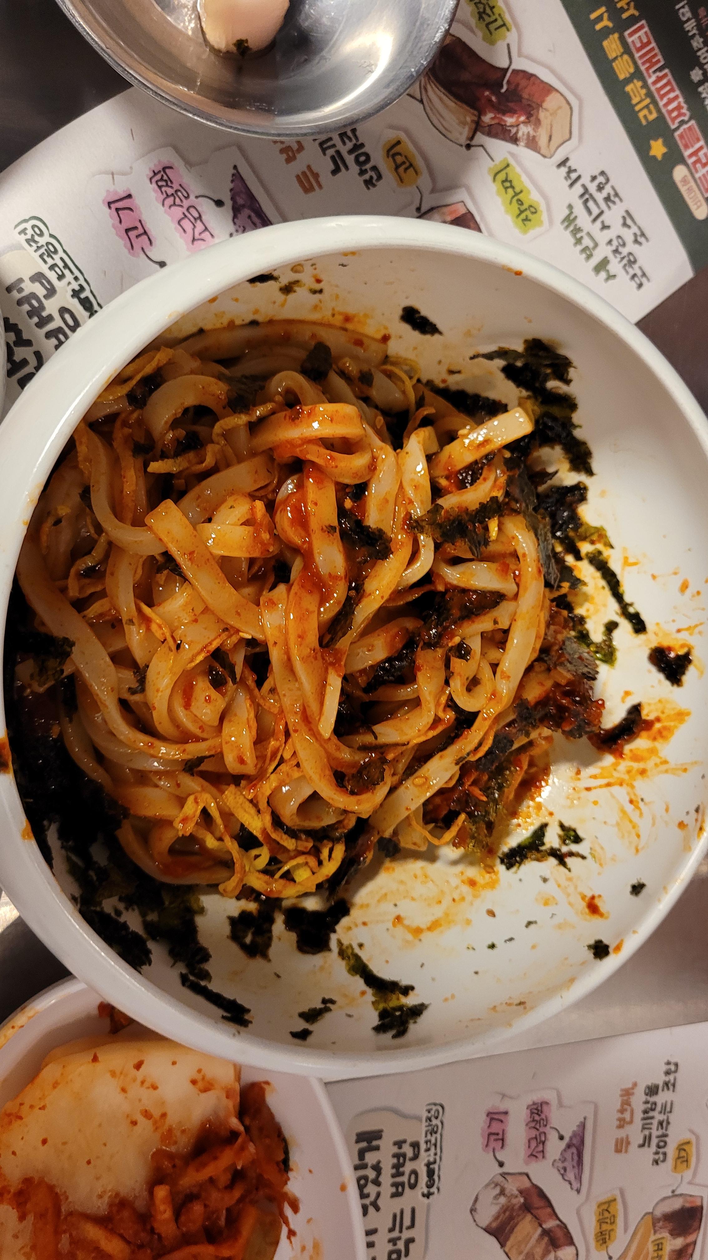 고기가 나오기전에 순창 비빔칼국수로 입맛을 돋구기 위해서 나옵니다. 칼국수에서 빛나는 윤기가 보이나요. 양념이 잘 베여서 부드럽고 살살 녹아서 목구멍으로 넘어 간답니다.