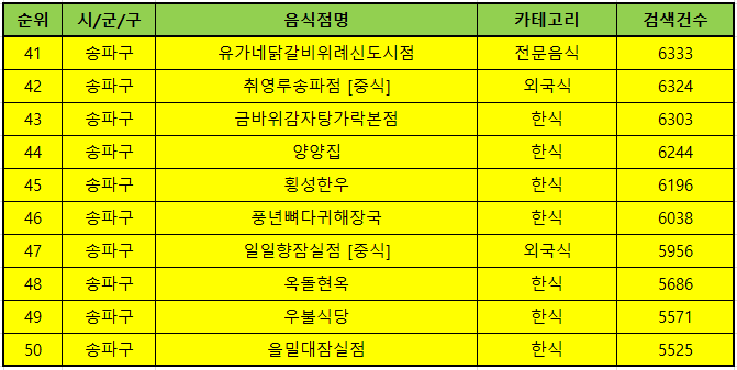 안녕하세요. 전국맛집을 알려드리는 일상탈출입니다. 오늘은 서울 송파 맛집 추천해 드리겠습니다. 송파 맛집 베스트10은 유명해서 사람들이 많이 방문하는곳이며, 송파 네비게이션 검색 후 방문순위 TOP50 리스트도 공개하겠습니다.