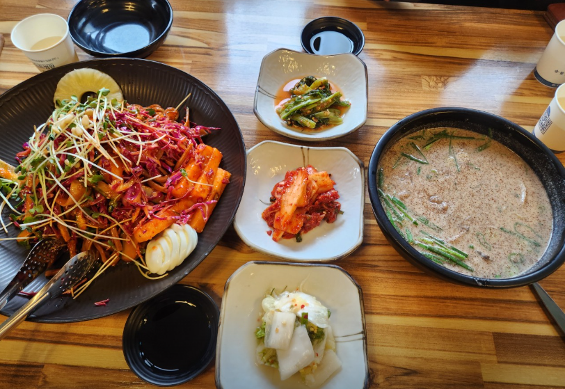 여름에 엄청 인기많은 곳이어서 궁금했는데 인기가 많을 만하네요 🤩 우선 초계국수가 새콤하니 여름에 없는 입맛 찾아오게 할 것 같고 양도 푸짐하니 이게 바로 국수지! 할 것 같습니다 ㅎㅎ 초계비빔국수를 먹었는데 막국수와는 조금 다른 매력, 마냥 매울 것 같지만 초계가 셔서 엄청 새콤한 그런 점이 있었네요! 사실 초계가 너무 셔서 먹다가 중간 중간 너무 힘들기도 했었는데 😅 그래도 도토리전병 먹으면서 버텼네요(?) ㅋㅋㅋ 도토리전병이 진짜 신의 한 수였습니다 ㅋㅋㅋ 김치와 함께 도톰한 도토리전병이 초계국수의 신 맛을 조금 잡아주는(?) 그런 역할을 했습니다 ㅋㅋㅋ 다음에도 또 가고 싶은데 신 맛을 버텨야 한다는 생각에 아찔합니다.