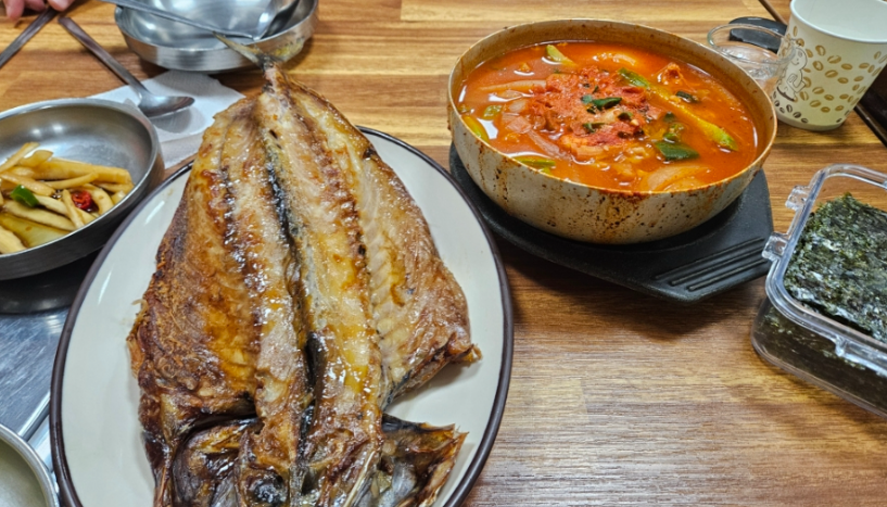 애호박과 돼지고기 잘 어울립니다 고기육수에 고추장이 잘 풀어져있어 시원합니다 반찬도 무침 위주로 구성되어 있어서 맛이 없을 수가 없어요 프로야구 선수들이 왜 추천하는지 알 수 있어요 나트륨 폭탄이지만 속이 불편하진 않아요 김에 묵은지 올리고 밥을 싸서 찌게 국물에 푹 적셔 먹으면 존맛입니다 단지 테이블이 깨끗하지 않아서 관리가 필요해 보였어요. 간장게장은 간간한 양념에 쉽게 먹을 수 있게 잘라 나와서 좋지만, 녹진한 알이 많이 있진 않아 살짝 아쉬웠어요. 생선구이로 주문한 고등어는 상대적으로 간간한 편이었고, 삼치는 짜지않고 담백해서 좋았네요. 웨이팅 30분정도 하고 들어갔어요