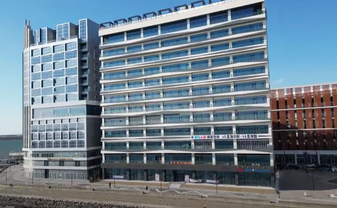 시화호 바닷가에서 보이는 신상건물 외부 모습입니다. 출입구는 반대편에 있습니다.