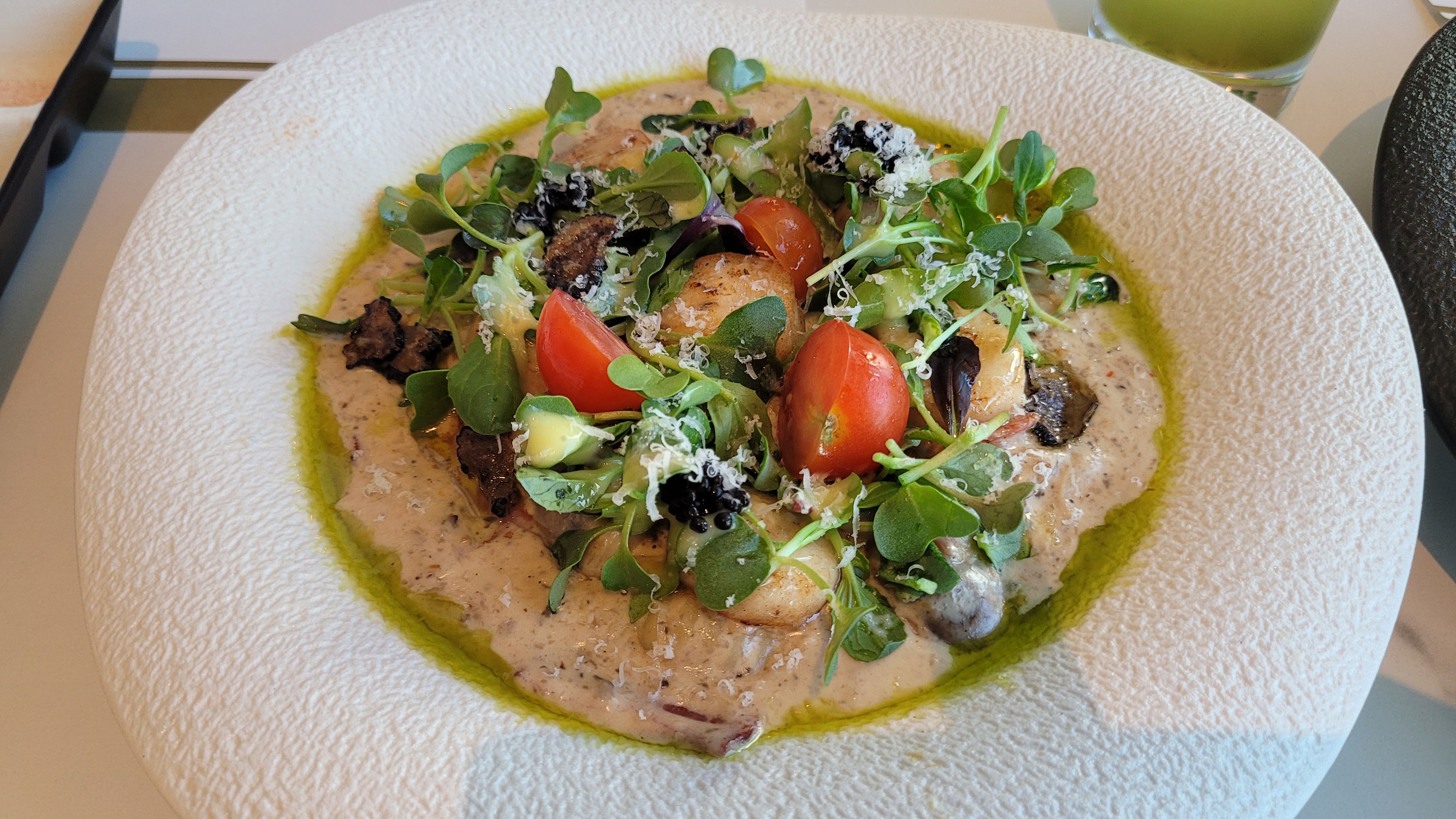 트러블 관자 크림 뇨끼는 부드럽고 쫄깃한 소면과 기풍이 가득한 트러블 크림 소스가 어우러진 고급스러운 이탈리아 요리입니다.