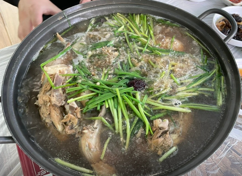 칠곡에 출장 갔다가 거래처 추천으로 방문했는데 너무 맛있어요. 일반 삼계탕 먹었구요, 국물이 걸죽하지 않고 맛있으며 닭똥집과 구운 계란, 인삼주가 기본으로 나와요. 출장이라 인삼주는 못마셨지만 다른 테이블 보니 많이들 드시더라구요. 마늘짱아찌도 오이지무침도 다 맛있어요. 인삼주 너무 맛있고 삼계탕 진짜 맛있어요. 소금간 하지 않아도 기본 육수가 맛있고 밑반찬도 너무 맛있어요. 무엇보다 맛 대비 가격이 너무 저렴해요. 술도 저렴해서 모임하기 딱 좋네요ㅎㅎ