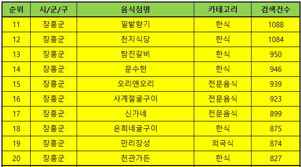 안녕하세요. 전국맛집을 알려드리는 일상탈출입니다. 오늘은 전남 장흥 맛집 추천해 드리겠습니다. 장흥 맛집 베스트10은 유명해서 사람들이 많이 방문하는곳 10곳과 네비게이션 방문순위 TOP30을 알려 드립니다.