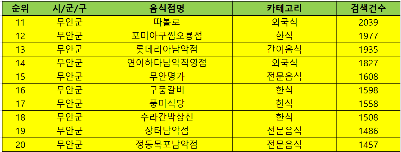 | 10 | 구풍갈비 | 떡갈비, 갈비 | 무안 시골에 숨겨진 떡갈비 맛집 |