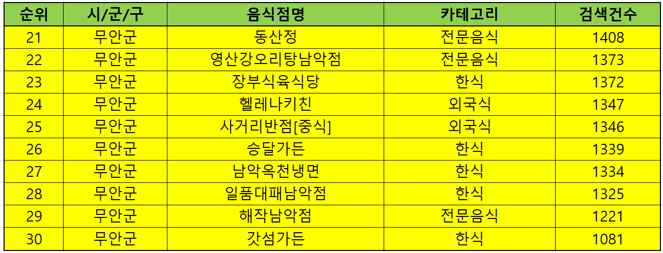 | 1 | 두암식당 | 짚불구이, 칠게장 | 무안의 대표 백년가게 |