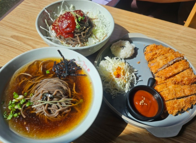 | 메뉴 및 가격 | 소바+돈까스샐러드 (대표), 수제돈까스, 치즈돈까스, 꼬치어묵우동 등 |