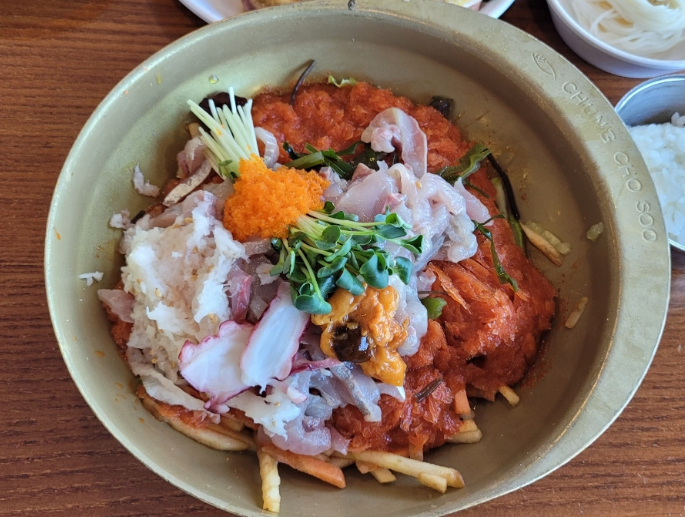 위에 올라간 회 너무 맛있고 신선해요