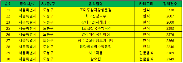 서울 도봉구 맛집 베스트10곳과 최근 1년 동안 많이 검색해서 방문하는 도봉구 맛집 방문순위 TOP30 등 좋은 정보가 많이 있으니 끝까지 읽어 주세요.