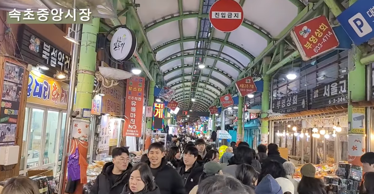 속초 여행의 꽃! 닭강정, 씨앗호떡 등 다양한 먹거리가 가득한 전통시장입니다.