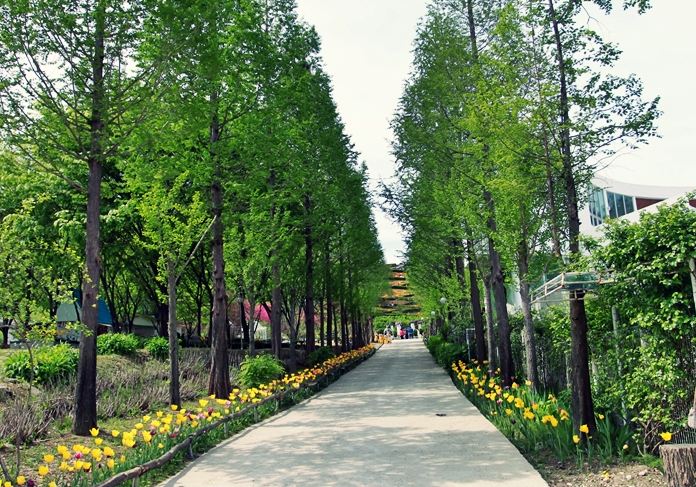 메타스콰이아길에서부터 정상 달빛폭포까지 관람동선을 따라 만개한 수선화와 튤립을 볼 수 있다.