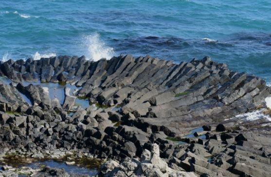 주상절리는 마치 예리한 조각 칼로 섬세하게 깎아낸 듯한 4~6각형 형태의 기둥으로, 현무암질 용암류에 나타나는 수직 절리를 말한다.