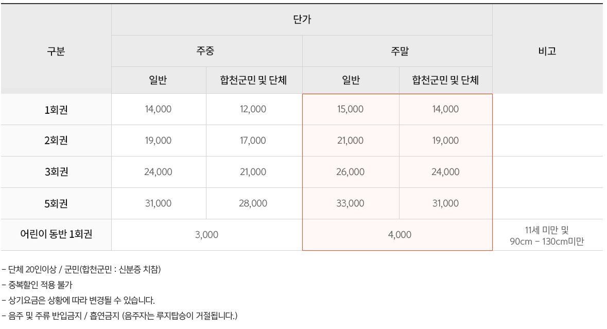 - 학생,군인,어린이(개인) : 3,000원