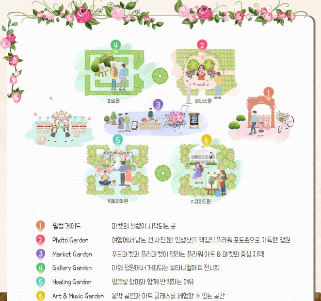 국내 최고의 품질 720품종, 300만 송이의 장미! 장미전문가 '로자리안'들이 1년 간의 정성과 기술로 가꾼 고품격 장미 정원을 즐겨보시면 좋을것 같습니다.