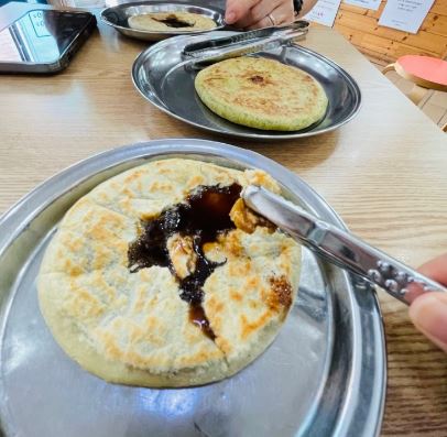 호떡맛이 독특합니다. 막 튀겨낸 기름진 맛이 아니라 집게로 뜯어서 용광로에 직어먹습니다.