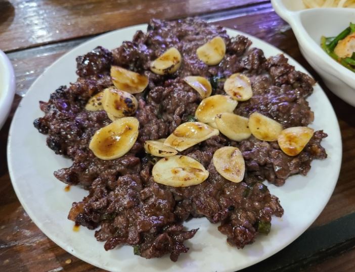 적당한 양념에 불향이 들어간 기름진 떡갈비입니다. 조금 비싸기는 하지만 맛은 좋습니다.