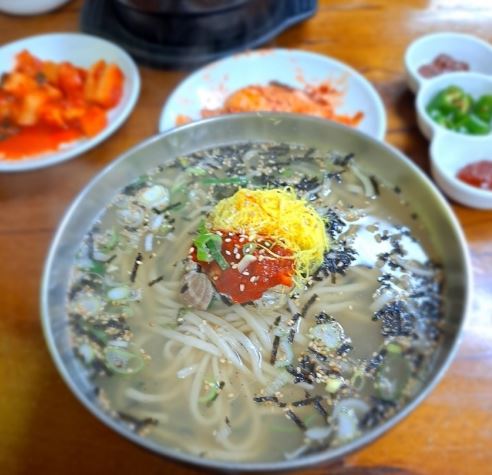 면을 바로 뽑아주셔서 면이 쫄깃하고 부드럽습니다. 육수도 짜지 않게 새콤달달합니다.
