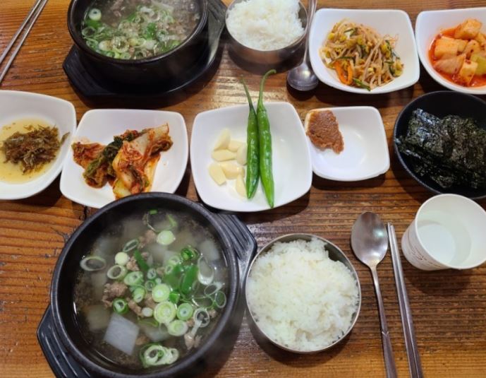 무우국과 닭국 국물이 깔금하며, 감칠맛이 납니다. 양도 많습니다. 육회비빔밥은 회전율이 좋아서 신선하고 아주 맛있습니다.